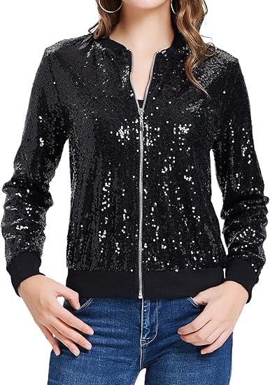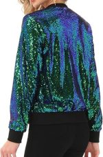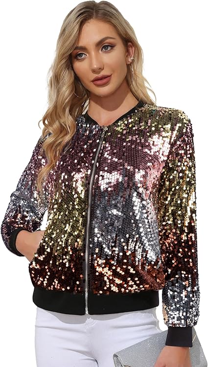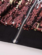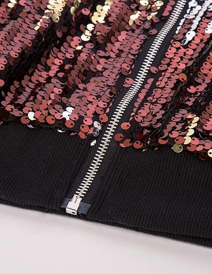 The Cosmic Eclipse Sequin Bomber Jacket is a stunning bomber-style jacket with a bold ombre sequin design that transitions from black and gold to vibrant pink and red. Featuring a high collar, ribbed cuffs/hem, and a full-length metallic zipper, it combines retro bomber aesthetics with modern glamour. The densely packed sequins catch the light for a dazzling effect, making it perfect for parties or high-impact outings. Lightweight and tailored for a snug fit, it balances edgy style with lavish flair. Pair it with simple outfits to let its sequined artistry take center stage.