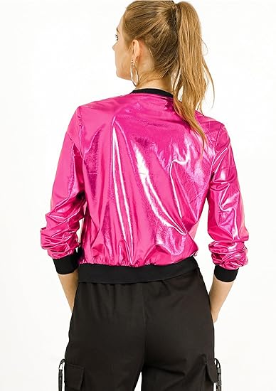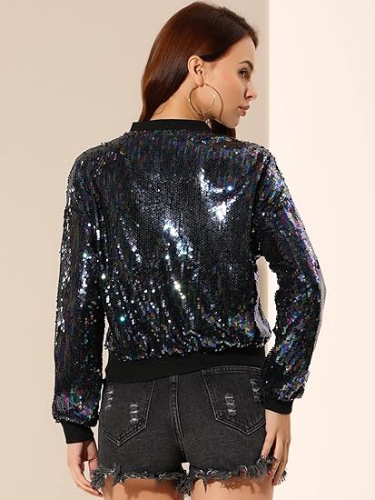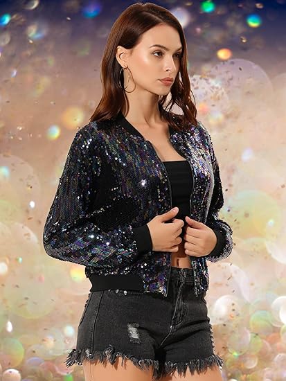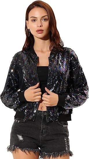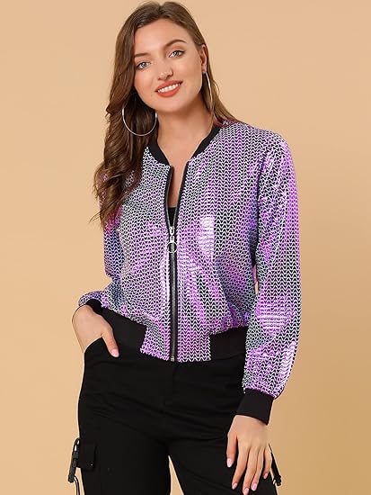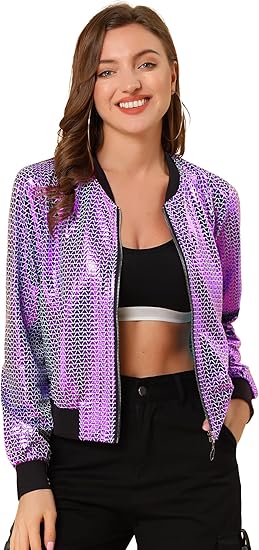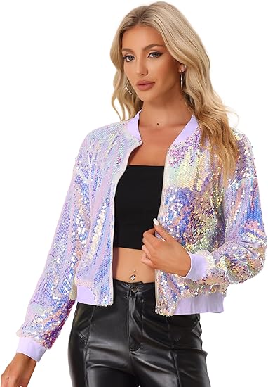 The Prismatic Aurora Sequin Bomber Jacket is a bold, bomber-style piece with a high collar, full-length zipper, and ribbed cuffs/hem. Covered in densely packed holographic sequins that shimmer between purple, gold, and blue, it creates a mesmerizing, light-reactive effect. Lightweight and slightly oversized, it pairs effortlessly with casual or edgy outfits—like leather pants or a crop top—for a standout look. Perfect for nightlife, parties, or festive events, the bomber silhouette balances comfort with high-impact glamour. Its shimmering sequins and modern design make it ideal for those seeking a statement piece that radiates futuristic, iridescent allure.
